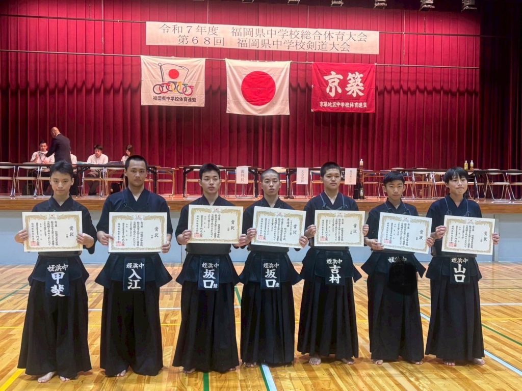 早良区剣道連盟所属の志煉会剣道倶楽部の道場生が所属する姪浜中学が、 令和7年度中総体(剣道)で県大会準優勝(九州大会出場)しました。 第77回福岡県中学校総合体育大会 第68回福岡県中学校剣道大会 日 時 2025.7.28.29 会 場 行橋市民体育館 団体戦 準優勝(九州大会出場) 姪浜中学校(志煉会道場生のみ紹介) 次鋒 吉村瑛太 中堅 坂口慧 副将 入江 凌太郎 大将 坂口遼